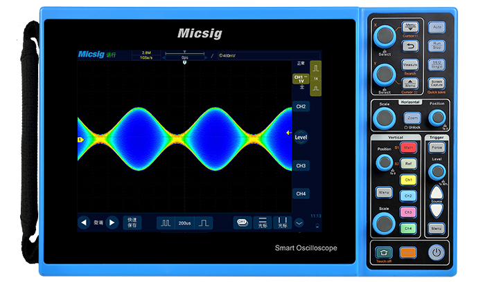 STO1000C系列是Micsig全新發布的一款便攜式智能示波器。最大帶寬150MHz,采樣率1GSa/s,存儲深度達28Mpts,最多擁有4個模擬通道,波形捕獲率高達 80,000 幀/秒;采用高靈敏度的數字觸發系統,觸發抖動很小,支持串行總線觸發和解碼;具備豐富的測量和數學運算功能;標配數字濾波模塊;支持256級波形灰度顯示與色溫顯示;配有LAN、Wi-Fi、USB Host、USB Device、HDMI、Trigger out等豐富端口;配置800*600分辨率的8英寸工業電容觸控屏與高度集成控制面板,使得該系列機型支持三種操作模式:全觸控操作、控制面板操作(無需觸屏)、觸控與控制面板混合操作,結合Micsig獨有的觸控算法專利技術,將用戶體驗提升到一個全新的高度。