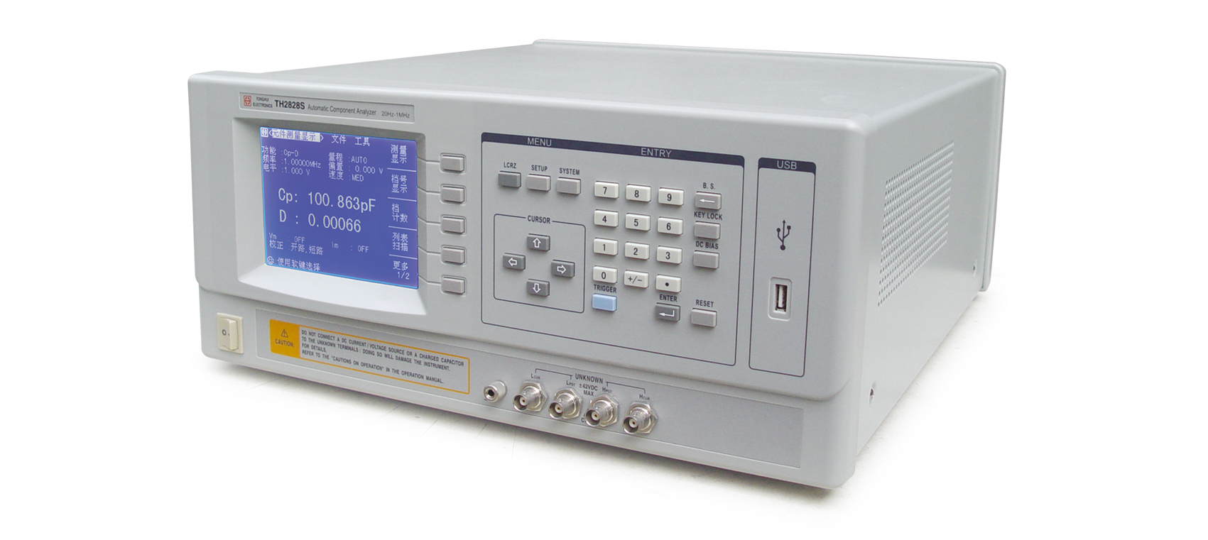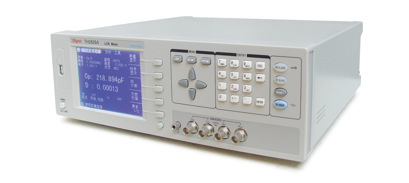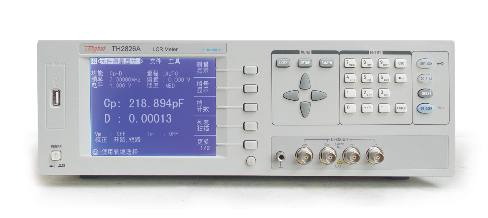 TH2826A 高頻LCR數字電橋應用■無源元件?電容器、電感器、磁芯、電阻器、壓電器件、變壓器、芯片組件和網絡元件等的阻抗參數評估和性能分析■半導體元件?LED驅動集成電路寄生參數測試分析;變容二極管的C-VDC特性;晶體管或集成電路的寄生參數分析■其它元件?印制電路板、繼電器、開關、電纜、電池等的阻抗評估■介質材料?塑料、陶瓷和其它材料的介電常數和損耗角評估■磁性材料?鐵氧體、非晶體和其它磁性