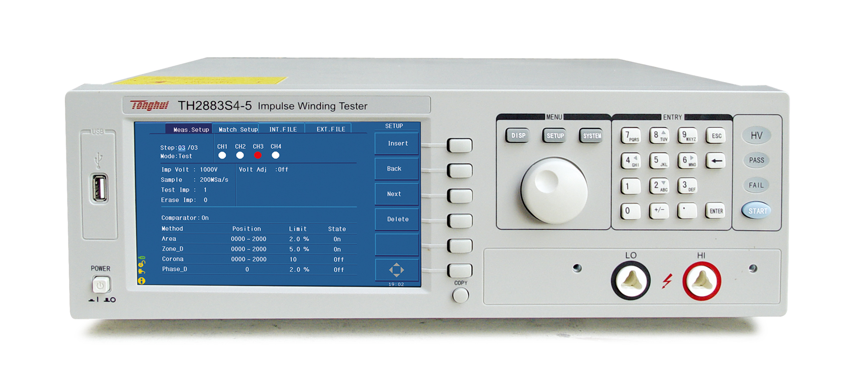 ? 沖電壓,是測試各種線圈的標配產品。TH2883-10具有最高10kV的脈沖輸出電壓,可測試更高絕緣耐壓的匝間測試。