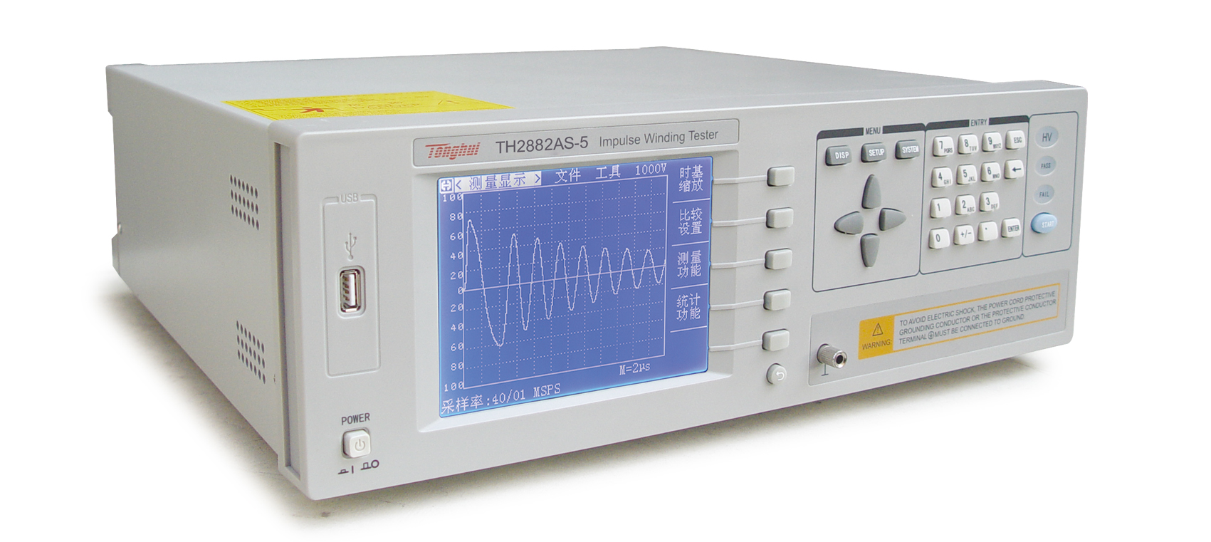TH2882AS-5脈沖式線圈測試儀簡介■?線圈類產品(如變壓器、電機等)由于繞線材料、磁性材料、骨架、加工工藝等因素的影響會產生線圈層間、匝間及引腳間等絕緣性能的降低。TH2882A系列脈沖式線圈測試儀是采用高速取樣技術研制的新一代線圈類產品絕緣性能的測試儀器,可為大多數線圈類產品提供測試解決方案。TH2882A將標準線圈的采樣波形存儲于儀器中,測試時將被測波形與標準波形比較,根據設定的判據(面
