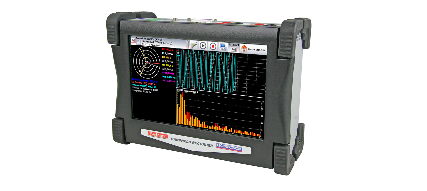 全新DAS30 / 50 / 60 系列數(shù)據(jù)記錄儀的設(shè)計(jì)滿足了絕大多數(shù)工業(yè)應(yīng)用程序的要求(IEC標(biāo)準(zhǔn)61010, 第三類測(cè)量標(biāo)準(zhǔn)600V)。你可以從內(nèi)存中直接查看你的測(cè)試數(shù)據(jù),也可以將數(shù)據(jù)直接儲(chǔ)存到USB中。使用Sefram軟件,你可以輕松將數(shù)據(jù)導(dǎo)入電腦中。