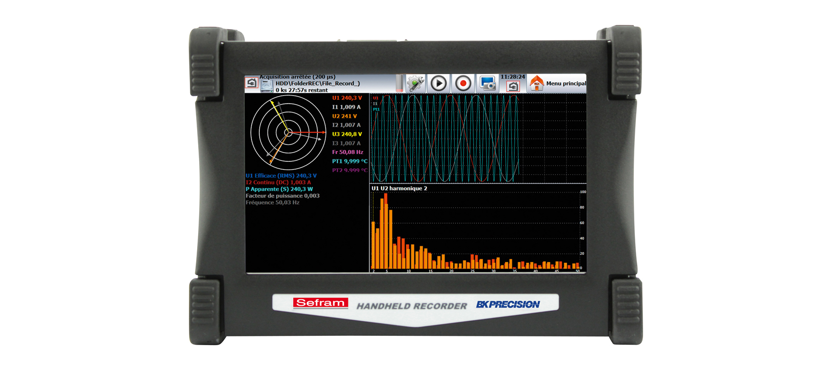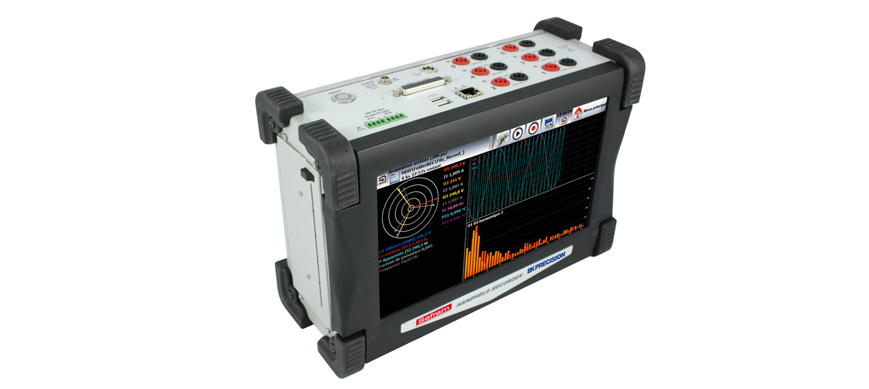 全新DAS30 / 50 / 60 系列數據記錄儀的設計滿足了絕大多數工業應用程序的要求(IEC標準61010, 第三類測量標準600V)。你可以從內存中直接查看你的測試數據,也可以將數據直接儲存到USB中。使用Sefram軟件,你可以輕松將數據導入電腦中。