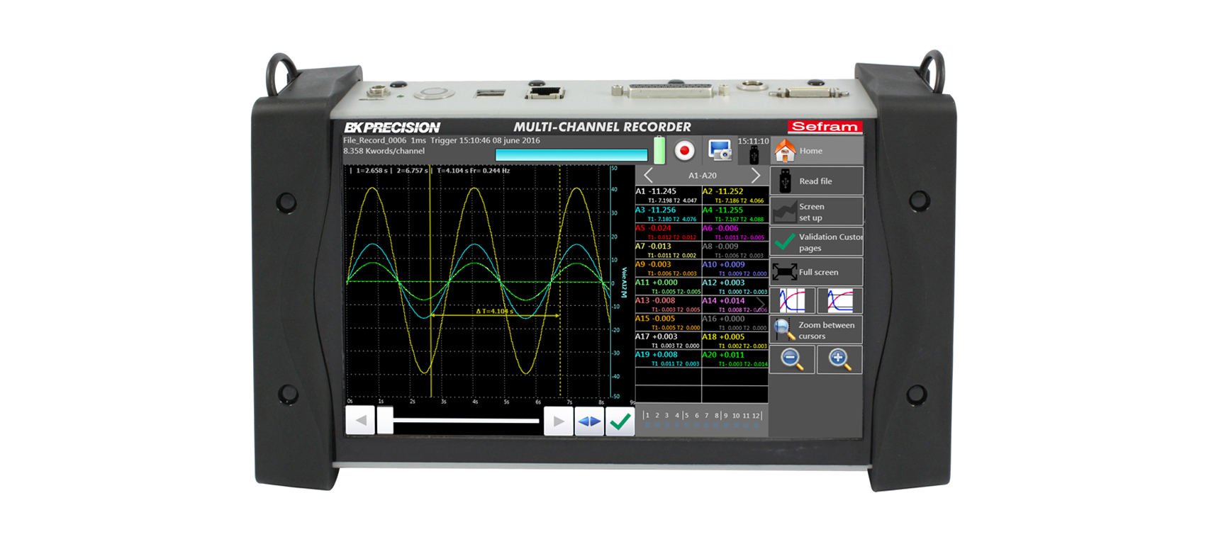 新一代的DAS 220記錄儀旨在測試您在過程中所需要記錄的參數:電壓測試傳感器測試(0-10V),溫度測試(熱電偶,PT100-PT1000),電流測試(選裝分流器)電阻測試,計數,頻率。您可以直觀地觀察測試結果(圖形和數值)以及在記錄儀內部或USB存儲測試結果,您可以在電腦上通過使用免授權的Das Lab軟件來進行數據轉移和處理