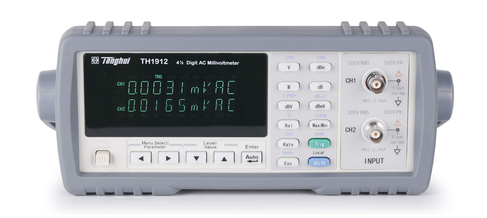 ■ TH1912雙通道數字交流毫伏表。主要用于工廠、研究所、部隊、科研實驗室。測量5Hz-3MHz正弦電壓,也可作為功率計使用。電壓、電平和功率電平(任意阻抗)測量。信號源的頻率響應直讀誤差%,放大器增益dB,衰減器衰減量dB,音響設備和有線電傳輸電平的測量。電壓探頭電路板測試安全方便。