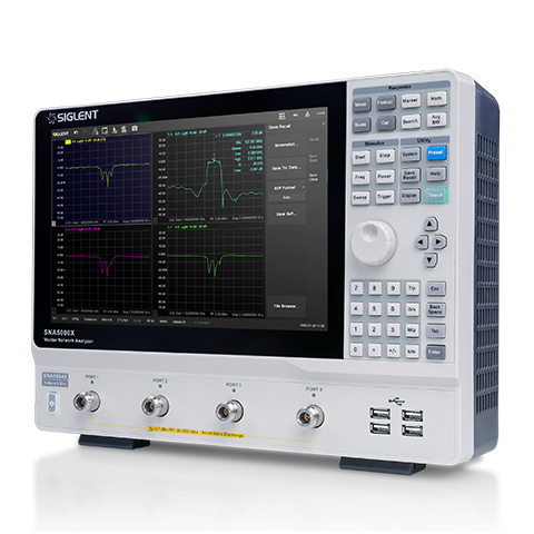 SNA5000X系列支持在多個窗口添加多條跡線進行全4端口S參數測試,并且具備多種顯示格式,比如 Log Mag,Lin Mag,Phase,Delay,Smith,SWR,Polar等,可以方便快捷地分析被測物的傳輸系數,反射系數,駐波比,阻抗匹配,相位,延時等參數。在生產線驗證天線,濾波器等的特性時,還可以保存參考跡線或者添加Limit模板進行通過失敗測試,有利于提高生產效率。