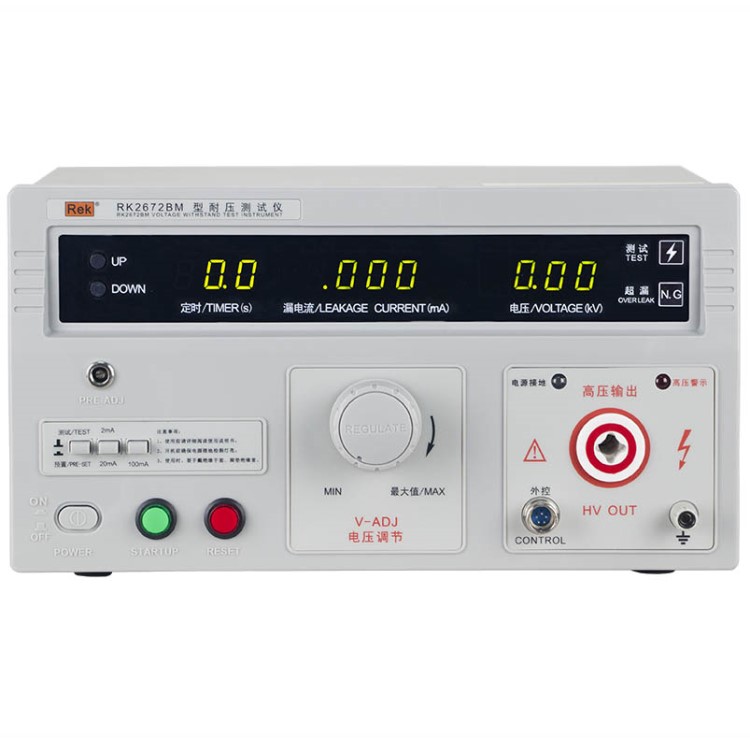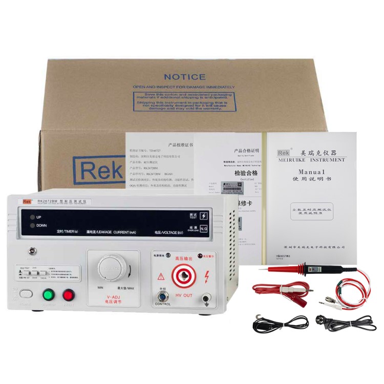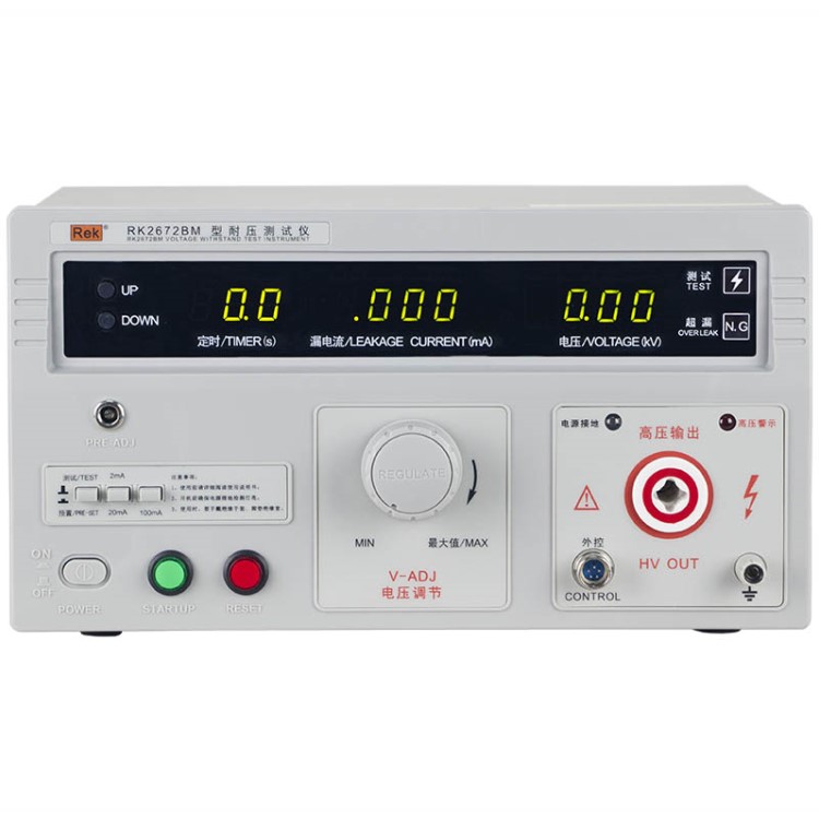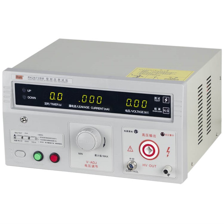 美瑞克RK2672系列耐壓測試儀是測量耐壓強度的儀器,可以直觀、準確、快速地測試各種被測對象的擊穿電壓、漏電流等電氣安全性能指標,并可以作為高壓源用來測試元器件和整機性能。