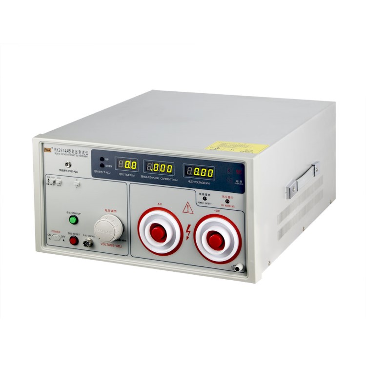 美瑞克RK2674系列耐壓測(cè)試儀是測(cè)量耐壓強(qiáng)度的儀器,可以直觀、準(zhǔn)確、快速地測(cè)試各種被測(cè)對(duì)象的擊穿電壓、漏電流等電氣安全性能指標(biāo),并可以作為高壓源用來測(cè)試元器件和整機(jī)性能。